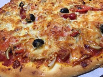 Keywords: pizza homemade italy parmesan delicious dinner italian national dish hearty olives cheese fragrant