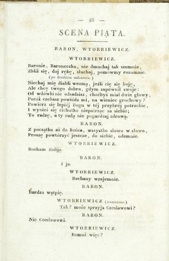 Keywords: PL Aleksander Fredro-Komedye t.3 050.jpeg en dramaty pl dramas http //polona pl/dlibra/doccontent2 id 193 Cyfrowa Biblioteka Narodowa Creator Aleksander Fredro Komedye Series title III Stanisławowie i Tarnowie u Kuhna i Milkowskiego 1830 Lviv pl PD-old-100 Komedye t 3 Aleksander Fredro |