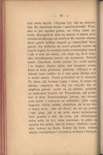 Keywords: PL Henryk Sienkiewicz-Quo vadis t.2 086.jpeg novel powieść http //www polona pl/dlibra/doccontent2 id 353 dirids 1 Cyfrowa Biblioteka Narodowa Creator Henryk Sienkiewicz Quo vadis powieść z czasów Nerona Series title II Gebethner i Wolff W L Anczyc i Spółka 1896 Warszawa pl PD-old Quo vadis t 2 Henryk Sienkiewicz |