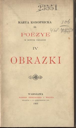 | Keywords: PL Marya Konopnicka-Poezye w nowym układzie IV Obrazki 005.jpeg en book pl książka http //www polona pl/dlibra/doccontent2 id 8800 Cyfrowa Biblioteka Narodowa Creator Maria Konopnicka Poezye w nowym układzie Obrazki Series title IV Gebethner i Wolff W L Anczyc i Spółka 1903 Warsaw pl PD-old-100 Poezye w nowym układzie Tom IV Obrazki |