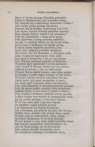 Keywords: PL Wacław Potocki-Wojna chocimska 086.jpeg epic poem poemat http //polona pl/dlibra/doccontent2 id 7493 Cyfrowa Biblioteka Narodowa Creator Wacław Potocki Wojna chocimska Poemat w 10 częściach Series title Biblioteka najcelniejszych utworów literatury europejskiéj S Lewental S Lewental 1880 Warszawa pl PD-old Wojna chocimska Potocki |