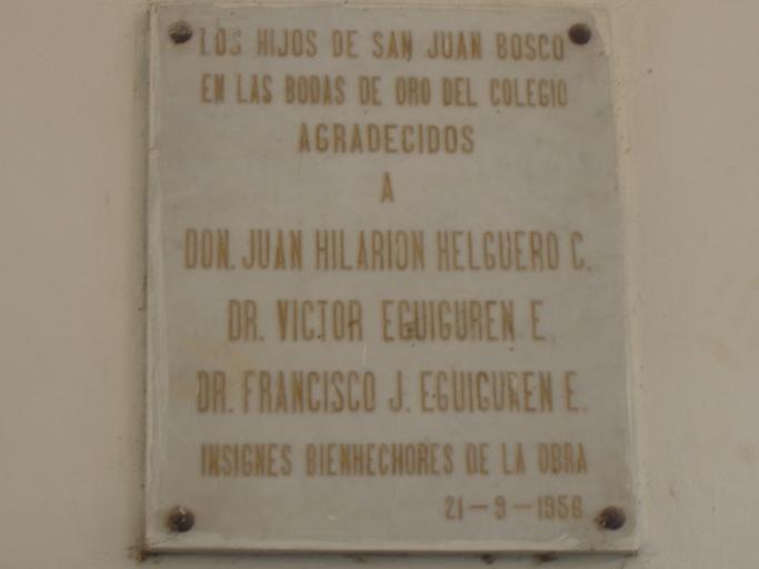 Keywords: Placa en zaguán del Antiguo Colegio D. Bosco.JPG es Placa conmemorativa en el zaguán del antiguo Colegio Don Bosco de Piura own Leguicall Cc-zero Check categories 2011 February 17 es wikipedia Francisco_José_Eguiguren_Escudero es wikipedia Víctor_Eguiguren_Escudero Piura 6 1855 births Politicians of Peru Piura 1921 deaths Institutions named after Don Bosco |