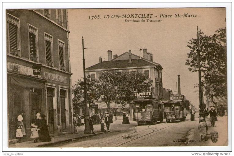 Keywords: Place Ronde. Terminus tramays. Montchat. Lyon.jpg Artwork LangSwitch At an intersection two trams intersect because of a track duplication Ă une intersection deux tramways se croisent en profitant du dĂ©doublement de la voie <br> LangSwitch Each tramway takes its power with a pole These poles join two electrical cords maintained by cables strung between poles on either side of the roadway The roof is advertising carrier for a Saponite washing and the other Buttercup Soap The floor is paved at rail level Chaque tramway prend son Ă©lectricitĂ© avec une perche Ces perches joignent deux fils Ă©lectriques maintenus par des câbles tendus entre des poteaux de part et d ™autre de la chaussĂ©e Le toit est porteur de publicitĂ© pour l ™un « Saponite lessive » et pour l ™autre « « Savon bouton d ™or » La chaussĂ©e est pavĂ©e au niveau des rails <br> LangSwitch To the right is a seemingly continuous sidewalk that leads to the background to a trade that the striped awning is lowered Ă droite se trouve un trottoir apparemment continu qui conduit au dernier plan Ă  un commerce dont la banne rayĂ©e est descendue <br> LangSwitch On the left a more than two-storey building receives the ground floor two shops Tobacco Widow Calandras Counter and Counter Berthollet On the sidewalk is a public water source Beyond it becomes a place then continues lined buildings A smokestack stands in the distance Ă gauche une batisse de plus de deux Ă©tages reçoit au rez-de-chaussĂ©e deux commerces « Tabac Vve Calandras Comptoir » avec une enseigne en drapeau « Tabac » et « Comptoir Berthollet » Sur le trottoir se trouve un point d ™eau public Au-delĂ  il devient une place puis se poursuit bordĂ© de constructions Une cheminĂ©e industrielle se dĂ©tache au lointain <br> LangSwitch The scene while the trees are covered with leaves is animated by many passersby of all ages La scène alors que les arbres sont feuillus est animĂ©e de nombreux passants de tous âges < 1914 LangSwitch Black and white postcard carte postale en noir et blanc place of discovery object history exhibition history credit line LangSwitch Down and rigth En bas Ă  droite S imon Farges Edit eur Lyon LangSwitch The postcard has been used during 1914 La carte a Ă©tĂ© utilisĂ©e en 1914 <br> LangSwitch Sainte-Marie Square became Ronde squar e La place Sainnte-Marie est devenue la place Ronde accession number place of creation LangSwitch Operator is facing East On the south pavement of cours Richard-Vitton he photography a part of the opposited one and Ronde square L ™opĂ©rateur est face Ă  l ™Est SituĂ© sur le trottoir sud du cours Richard-Vitton il photographie une partie du trottoir opposĂ© et la place Ronde <br>Montchat Lyon France Delcampe International sprl et Delcampe Luxembourg sĂ rl hĂ©bergĂ© par evonet 2015-06-17 fr PD-old-100 <gallery> File Place Ronde Terminus tramays Montchat Lyon jpg Place Ronde Terminus tramays plus clair moins bonne definition </gallery> Uploaded with UploadWizard Place Ronde Lyon 803 Cours Richard-Vitton Lyon 104 Ancien tramway de Lyon