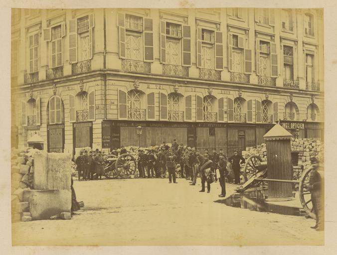 Keywords: Place Vendôme; Barricade in the Rue Castiglione WDL1273.png Artwork ru Б аквейе Б уно 1823 1875 гг fr Braquehais Bruno 1823-1875 en Braquehais Bruno 1823-1875 zh 布鲁诺·布拉奇海 ,1823-1875 年 pt Braquehais Bruno 1823-1875 ar براكهيه برونو، 1823-1875 es Braquehais Bruno 1823-1875 ru Вандомская площадь; ба икада на улице Кастильоне fr Place Vendôme  barricade de la rue de Castiglione en Place Vendôme; Barricade in the Rue Castiglione zh 旺多姆广 ;卡斯堤拉恩街的防御工事 pt Praça Vendôme; barricada em Rue Castiglione ar ميدان فندوم؛ متراس في شارع كاستيليون ru П ичиной ф анко-п усской войны стал ост нап яженности в отношениях между Ф анцией и П уссией в 1860-х гг Ф анция п и импе ато е аполеоне III была полна ешимости п ове ить астущую силу П уссии и отомстить за то что она ассмат ивала как яд дипломатических унижений П уссия п и канцле е Отто фон Бисма ке считала что война ге манских госуда ств п отив Ф анции под уководством П уссии станет ешающим шагом к созданию единой Ге манской импе ии Конфликт начался 19 июля 1870 г когда Ф анция объявила войну Ф анцузская а мия оказалась ужасно неподготовленной и поте пела сок ушительное по ажение в битве п и Седане отк ыв до огу на Па иж К 19 сентяб я немцкие войска полностью ок ужили го од и начали осаду кото ая п одлилась более четы ех месяцев От езанные от поставок п одовольствия из сельской местности па ижане пытались выжить питаясь собаками кошками и даже животными из па ижского зоопа ка Де евья на Елисейских полях и в па ках были вы ублены и использованы в качестве топлива 5 янва я немецкие войска начали бомба ди овку го ода кото ая п одолжалась по несколько часов каждую ночь в течение 23 суток а ок естности Па ижа было сб ошено около 12 000 сна ядов кото ые убили около 400 человек Па иж сдался 28 янва я в сущности положив конец войне За по ажением ф анцузов последовало на одное восстание и установление в а те 1871г Па ижской коммуны еволюционного п авительства сфо ми ованного в соответствии с ана хистскими и социалистическими п инципами Коммуна была жестоко подавлена в мае 1871 г ф анцузскими войсками п авительства Адольфа Тье а Во в емя неп одолжительного конт оля над Па ижем коммуна ы аз ушали импе ато скую колонну на Вандомской площади Подавление коммуны п ивело к дальнейшим значительным аз ушениям в го оде когда коммуна ы подожгли дво ец Тюиль и Лув и д угие здания К оме того многие здания пост адали или были аз ушены во в емя отчаянной пе ест елки между коммуна ами и конт еволюционными силами Siege de Paris 1870 1871 Осада Па ижа 1870 1871 гг п едставляет собой альбом из 110 фотог афий сделанных Огюстом Б уно Б аквейе 1823 1875 гг ф анцузским фотог афом и п ог ессивным фотожу налистом документи овавшим осаду и последствия бомба ди овок а также аз ушения п оизошедшие во в емя Па ижской коммуны <br>Ба икады; Пушки; Ф анко-п усская война 1870 1871 гг ; Память ми а; Вандомская площадь Па иж Ф анция ; Площади; Улица Кастильоне Па иж Ф анция ; Солдаты fr La guerre franco-allemande fut provoquée par l escalade des tensions entre la France et la Prusse dans les années 1860 La France sous l empereur Napoléon III était déterminée à contenir la croissance de la puissance prussienne et à venger ce qui était considéré comme une série d humiliations diplomatiques La Prusse sous le chancelier Otto von Bismarck considérait qu une guerre dirigée par la Prusse et menée par les États allemands contre la France serait un acte décisif menant à la création d un empire allemand unifié Le conflit débuta le 19 juillet 1870 jour où la France déclara la guerre L armée française s avéra terriblement mal préparée et subit une défaite désastreuse lors de la bataille de Sedan laissant la voie libre vers Paris Le 19 septembre les Allemands encerclèrent complètement la ville et commencèrent un siège qui allait durer plus de quatre mois Coupés du ravitaillement provenant de la campagne les Parisiens survécurent en mangeant les chiens les chats et même la plupart des animaux du zoo de Paris 