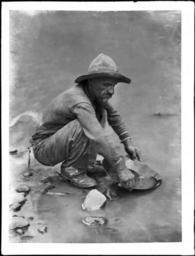 Keywords: Placer miner on the Colorado River near Lees Ferry, ca.1930 (CHS-4707).jpg en <br> Placer miner on the Colorado River near Lees Ferry ca 1930 Photograph close-up of a placer miner on the Colorado River near Lees Ferry ca 1930 The miner squats on small stones in the shallow water dipping a pan into the river He has a moustache and short beard and wears a long-sleeved shirt pants shoes and a worn hat Call number CHS-4707 Photographer James George Wharton Filename CHS-4707 Coverage date 1925/1935 Part of collection California Historical Society Collection 1860-1960 Type images Part of subcollection Title Insurance and Trust and C C Pierce Photography Collection 1860-1960 Repository name USC Libraries Special Collections Format glass plate negatives Microfiche number 1-111-38 Archival file chs_Volume98/CHS-4707 tiff Repository address Doheny Memorial Library Los Angeles CA 90089-0189 Geographic subject country USA Format aacr2 3 photographs glass photonegative photonegative photoprint b w ; 22 x 17 cm 25 x 20 cm Rights Digitally reproduced by the USC Digital Library; From the California Historical Society Collection at the University of Southern California Subject adlf rivers Project USC Accession number 4707 Repository email specol usc edu Identifying number unidentified no James-704 Contributing entity California Historical Society Date created 1925/1935 Publisher of the digital version University of Southern California Libraries Format aat negatives photographic ; photographic prints; photographs Legacy record ID chs-m17021; USC-1-1-1-14113; USC-1-1-1-14262 Geographic subject rivers Colorado River Access conditions Send requests to address or e-mail given Phone 213 821-2366; fax 213 740-2343 Subject file heading Parks -- Grand Canyon -- Colorado River -- Marble Canyon; Mining -- Miners Subject lcsh Parks; Canyons; Rivers 1925/1935 date created George Wharton James 1858 1923 http //digitallibrary usc edu/cdm/ref/collection/p15799coll65/id/17036 PD-old-70-1923 Lee's Ferry Mining in Arizona Arizona in the 1930s Black and white photographs of Arizona Images from USC Digital Library uploaded by Fæ Photographs by George Wharton James California Historical Society Collection 1860-1960 Glass plate negatives Gold panning |