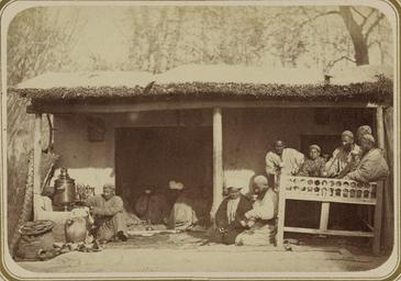 | Keywords: Places of Social Gathering. Tea House WDL10751.png Artwork ru Кун Александ Людвигович 1840 1888 гг fr Kun Aleksandr L 1840-1888 en Kun Aleksandr L 1840-1888 zh 亚历山大·L· ,1840-1888 年 pt Kun Aleksandr L 1840-1888 ar كُن، ألكسندر ل ، 1840-1888 es Kun Aleksandr L 1840-1888 ru еста общественных соб аний Чайхана fr Lieux de rencontres Salon de thé en Places of Social Gathering Tea House zh 社交聚会 茶馆 pt Locais para encontros sociais Casa de chá ar أماكن اللقاءات الاجتماعية بيت الشاي ru Эта фотог афия входит в этног афическую часть <em> Ту кестанского альбома </em><em></em> всесто оннего исследования Цент альной Азии п едп инятого после того как в 1860-х годах в егионе установилось господство Российской импе ии Альбом созданный по аспо яжению гене ала Константина Пет овича фон Кауфмана 1818 1882 годы пе вого гене ал-губе нато а оссийского Ту кестана состоит из четы ех частей в шести томах «Часть а хеологическая» два тома «Часть этног афическая» два тома «Часть п омысловая» один том и «Часть исто ическая» один том Основным составителем альбома был оссийский востоковед Александ Людвигович Кун аботавший совместно с иколаем Венедиктовичем Богаевским В альбоме п едставлено около 1200 фотог афий а также а хитекту ные планы аква ельные исунки и ка ты «Часть этног афическая» включает в себя 491отдельную фотог афию на 163 листах а фотог афиях изоб ажены п едставители азличных на одов егиона листы 1 33 повседневная жизнь и итуалы листы 34 91 а также виды де евень и го одов уличные то говцы и комме ческая деятельность листы 92 163 <br>Кафе; Еда и напитки; Этног афические фотог афии; Фотог афические исследования; Самова ы; Чай; Тю кские на оды fr Cette photographie est extraite de la partie ethnographique de l'<em>Album du Turkestan</em> étude visuelle complète de l'Asie centrale entreprise après que l'Empire russe prit le contrôle de la région dans les années 1860 Commandé par le général Konstantin Petrovich von Kaufman 1818 1882 premier gouverneur général du Turkestan russe l'album est composé de six volumes en quatre parties la partie archéologique deux volumes la partie ethnologique deux volumes la partie sur les métiers un volume et la partie historique un volume L'album fut essentiellement compilé par l'orientaliste russe Aleksandr L Kun assisté de Nikolai V Bogaevskii Il comporte près de 1200 photographies et inclut également des plans architecturaux des dessins à l'aquarelle et des cartes La partie ethnographique compte 491 photographies sur 163 planches montrant des individus des différentes peuplades de la région planches 1 à 33 des scènes de la vie quotidienne et des rites planches 34 à 91 ainsi que des vues de villages et de villes de vendeurs ambulants et d'activités commerciales planches 92 à 163 <br>Cafés; Gastronomie et boissons; Photographies ethnographiques; Inventaires photographiques; Samovars; Thé; Peuples turciques en This photograph is from the ethnographical part of <em>Turkestan Album</em><em> </em>a comprehensive visual survey of Central Asia undertaken after imperial Russia assumed control of the region in the 1860s Commissioned by General Konstantin Petrovich von Kaufman 1818 82 the first governor-general of Russian Turkestan the album is in four parts spanning six volumes Archaeological Part two volumes ; Ethnographic Part two volumes ; Trades Part one volume ; and Historical Part one volume The principal compiler was Russian Orientalist Aleksandr L Kun who was assisted by Nikolai V Bogaevskii The album contains some 1 200 photographs along with architectural plans watercolor drawings and maps The Ethnographic Part includes 491 individual photographs on 163 plates The photographs show individuals representing the different peoples of the region Plates 1 33 ; daily life and rituals Plates 34 91 ; and views of villages and cities street vendors and commercial activities Plates 92 163 <br>Cafés; Eating and drinking; Ethnographic photographs; Photographic surveys; Samovars; Tea; Turkic peoples zh 这张照片出自<em> 其斯 相册 </em>的民族部分,该相册是俄罗斯 国 19 世纪 60 年代取得中亚控制 后, 手制 的 部针对该 区的综合 图像调查记录 相册由俄罗斯驻 其斯 (俄罗斯 国中亚属 的名称)首任 康斯 丁·彼得罗维奇·凡· 夫曼(Konstantin Petrovich von Kaufman,1818 82 年)将军赞助完成,共分六卷,四个部分: 古部分 (两卷); 民族部分 (两卷); 贸易部分 ( 卷)和 历史部分 ( 卷) 相册的主要编纂人是俄罗斯 方学 亚历山大·L· Aleksandr L Kun 亚历山大是 尼可莱·V·柏盖维斯基 Nikolai V Bogaevskii 的协助下完成相册的编纂 相册共含 1200 张照片,另 建筑平 图 水彩画和 图 民族部分 包括 491 张个人照,占 163 页 照片展现了该 区各个民族的人物形象(1-33 页) 日常生活和礼仪(34-91 页)以及城市 庄 街头摊贩和商业活动 景(92-163 页) <br>咖啡厅; 饮食; 民族照片;