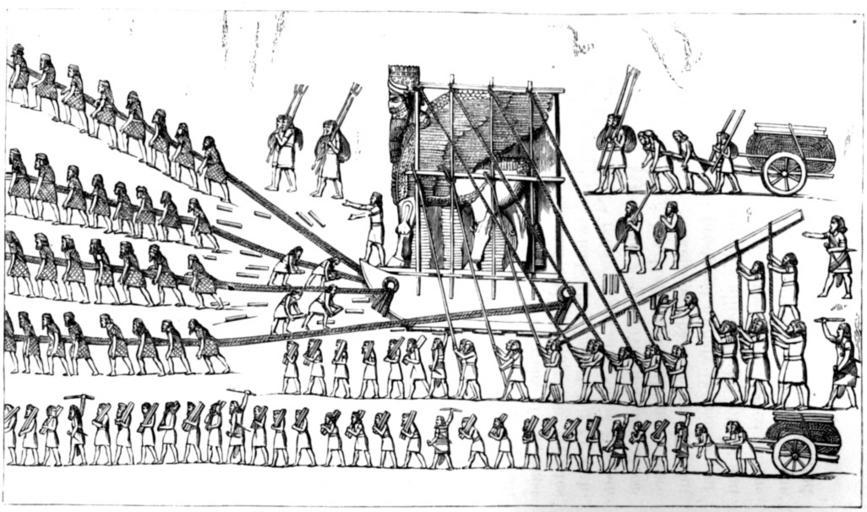 Keywords: Placing a Human Headed Bull in Position.jpeg en Wood engraving of The thrones and palaces of Babylon and Nineveh by John Philip Newman 1876 http //www dabar org/Assyria/Newman/chapter5 html Newman John Philip 1826-1899 other versions Custom license marker 2015 11 06 PD-old Shedu The thrones and palaces of Babylon and Ninevah from sea to sea; a thousand miles on horseback 1876 Uploaded with UploadWizard