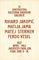 Keywords: Plakat za IX. umetnostno razstavo Narodne galerije 1927.jpg sl Plakat za IX umetnostno razstavo Narodne galerije Rihard Jakopič Matija Jama Matej Strnen Ferdo Vesel 1927 april/maj Jakopičev paviljon vsak dan 9 - 18 5V80YYH7 author 1927 PD-Slovenia 1927 works in Slovenia Posters of Slovenia Rihard Jakopič Matija Jama Matej Sternen Ferdo Vesel Jakopič Pavilion |