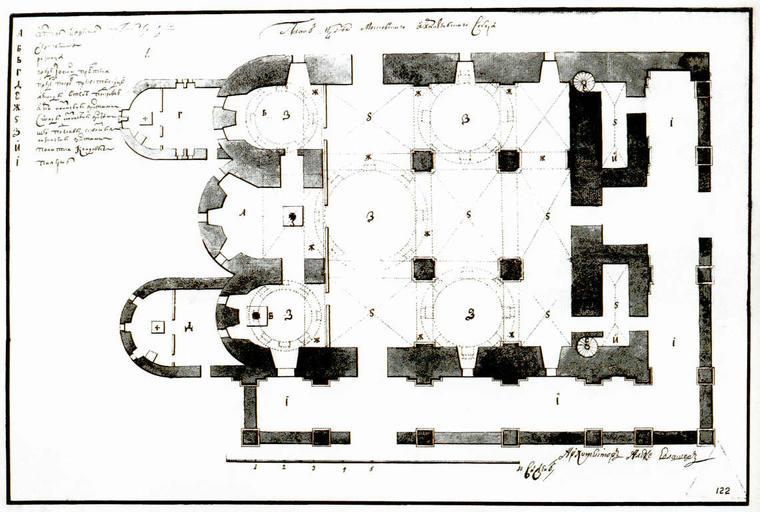 | Keywords: Plan of Archangel cathedral by Yevlashev.jpeg А П Евлашев План А хангельского собо а осковского К емля е позднее 1760 г Источник http //kawelmacher ru/science_kavelmakher25 files/image005 jpg PD-old-100 Cathedral of the Archangel in Moscow Cathedral Square Moscow |