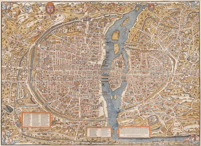 | Keywords: Plan de Paris vers 1550 color.jpg Plan of Paris by Truschet et Hoyau scale ca 1 4 500 94 x 120 cm Seefeld Zurich published this 1980 facsimile of the original map also known as the plan de Bâle Basel plan Boutier gives a date of c 1553 and estimates a scale of c 1 7 000 The original is in color and was engraved on wood 8 plates 96 x 133 cm assembled Le plan de Paris par Truschet et Hoyau La ville cité université de Paris échelle 1 4 500 environ facsimile Seefeld Zürich 1980 NL Universiteitsbibliotheek Vrije Universiteit LL 06979gk 130/od/1550; http //imagebase ubvu vu nl/getobj php ppn 330025988 1550 Olivier Truschet engraver <br/>Germain Hoyau designer <gallery> File Plan de Paris vers 1550 jpg <center>monochrome</center> </gallery> Information field References Boutier Jean 2000 Les Plans de Paris second edition pp 86 “88 Paris Bibliothèque nationale de France ISBN 9782717723892 Assessments 1 PD-old-100 Maps of Paris in the 16th century 1550 16th-century maps of Paris 1550 Pictorial maps of Paris 1550 Images from Universiteitsbibliotheek Vrije Universiteit Amsterdam Map of Paris by Truschet and Hoyau 1550 Featured pictures of Paris Featured maps |
