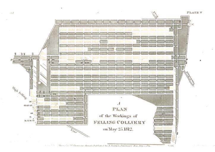 Keywords: Plan of Felling Colliery, May 25 1812.svg en The drawing is a copy of a published plan of the colliery at the time of the 1812 explosion 1813-05 Annals of Philosophy Volume I January to June 1813 Thomas Thomson other versions PD-old-100-1923 Uploaded with UploadWizard Felling Tyne and Wear Mining |