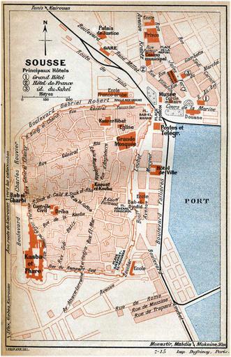Keywords: Plan Sousse 1916.jpg Plan de Sousse en 1916 Tunisie http //profburp com/plans/image11 htm 1916 Hachette et Cie Paris PD-Tunisia Maps of Sousse