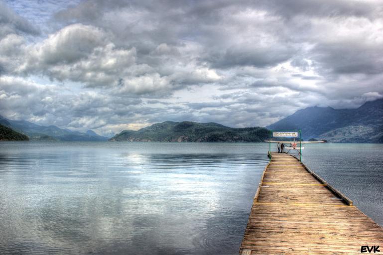 Keywords: plane dock seaplane lake landscape view clouds