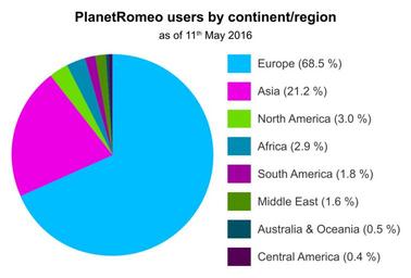 Keywords: PlanetRomeo users by continent or region, as of 11th May 2016.svg en This graphic has a pie chart showing planetromeo com user distribution by continent/region as of 11th May 2016 de Diese Grafik enthält ein Tortendiagramm das die Verteilung von Nutzern von planetromeo com nach Kontinent/Region aufzeigt Stand 11 Mai 2016 own Badgon 2016-05-11 Otherversion GayRomeo users by region as of 29th July 2012 png Older PNG version A + Cc-zero PlanetRomeo SVG charts in English SVG pie charts |