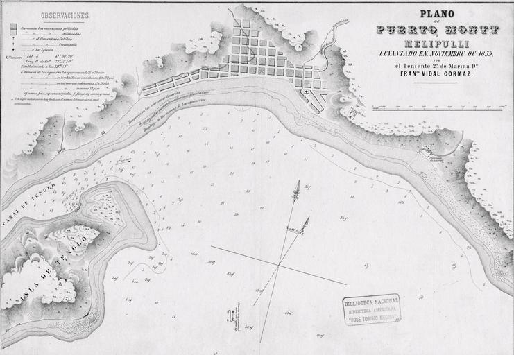 Keywords: Plano de Puerto Montt 1859.jpg es Plano de Puerto Montt Melipulli levantado en noviembre de 1859 http //www memoriachilena cl//temas/documento_detalle asp id MC0001435 Memoria Chilena Francisco Vidal Gormaz 1837 - 1907 1859 PD-Chile PD-old-100 1859 Puerto Montt |