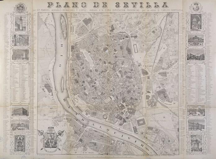 Keywords: Plano de Sevilla 1868.jpeg es Inserta en el ángulo inferior izquierdo escudo de Sevilla - Incluye a ambos lados relación de calles plazas y edificios más importantes y doce grabados que representan vistas y monumentos de la ciudad Fecha extraída de Planos de Sevilla colección histórica 1771-1918 / J Cortés José - Sevilla Ayuntamiento 1985 - p 18 http //bibliotecadigitalhispanica bne es/R/VR3MKDF3VTPFK68MYUKEU4BAXPBRJ3PDFY8KCTYLL6XRY2LQ2R-03192 func results-jump-full set_entry 000190 set_number 000259 base GEN01 Biblioteca Digital Hispánica Imprenta y Litografía de las Novedades Álvarez-Benavides y López Manuel Santigosa Carlos ed 1868 PD-old Old maps of Seville 1868 in Andalusia Seville in the 19th century |