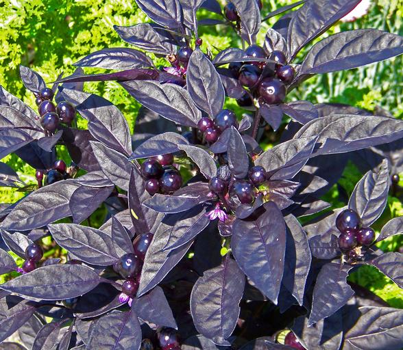 Keywords: plant purple leaves berries capsicum annuum black pearl capsicum annuum black pearl