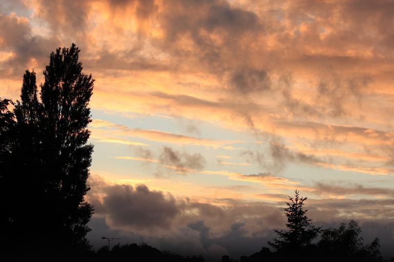 Keywords: plants trees silhouettes black dark flora cloudy sky orange sunlight clouds fluffy stormy evenings dusk sunset mornings dawn sunrise nature scenic scenery twilight landscape