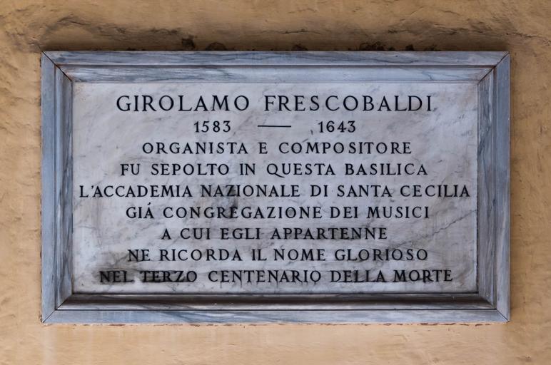Keywords: Plaque Frescobaldi Basilica Twelve Apostles Rome.jpg Girolamo Frescobaldi organiste et compositeur italien enterré dans la Basilique des Saints-Apôtres à Rome Italie Girolamo Frescobaldi italian organist and composer buried in this Basilica of the Twelve-Apostles in Rome Italy 2013-08-22 own Jebulon 41 8983 12 482837 cc-zero Uploaded with UploadWizard Basilica dei Santi Apostoli Rome - Portico Girolamo Frescobaldi Plaques in Rome Plaques referencing 1583 Plaques referencing 1643 Quality images by Jebulon 1943 in Rome ImageNote 1 2350 972 118 68 3636 2412 2 artefacts ImageNoteEnd 1 ImageNote 2 2223 1186 59 82 3636 2412 2 artefacts ImageNoteEnd 2 ImageNote 3 986 1208 168 91 3636 2412 2 artefacts ImageNoteEnd 3 QualityImage |