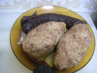 Keywords: Plat amb dues pilotes d-una escudella i carn d-olla.jpg en In Catalonia we have a special stew named escudella made with different meats bones and vegetables After the stew we usually eat boiled meat called carn d'olla which always includes a pilota a sort of an oval meatball made of a mixture of chopped meat garlic parsley etc Here you can see two pilotes As this takes a long time to cook nowadays it has becomed a dish for special days usually for Christmas lunch on December 25th The next day one usually eats canalons made with carn d'olla leftovers ca Imatge de dues pilotes de carn per a una escudella catalana own Slastic 2009 Cuisine of Catalonia Meatballs in Spain Botifarres |