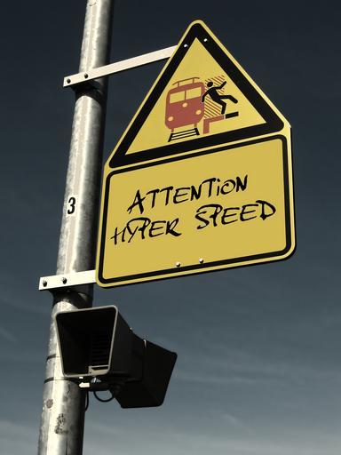 Keywords: platform note shield sign warning security speakers announcement information communication suicide warning sign risk train speed high speed rail traffic warnschild railway