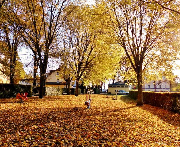 Keywords: playground residential development settlement play golden autumn fall foliage leaves nature