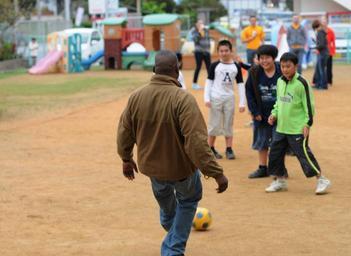 Keywords: Playing soccer 140307-N-EP471-303.jpg en U S Navy Chief Information Systems Technician Cliff McDaniel center assigned to Naval Mobile Construction Battalion 1 plays soccer with children March 7 2014 during an English through play community relations event at the Busy Bee International School in Okinawa Japan U S Navy photo by Chief Mass Communication Specialist Kim Martinez/Released 2014-03-07 Chief Petty Officer Kimberly Martinez https //www dvidshub net/image/1183777 140307-N-EP471-303 2014-03-11 10 00 OKINAWA JP PD-USGov-Military-Navy Okinawa check needed Images from DoD uploaded by Fæ