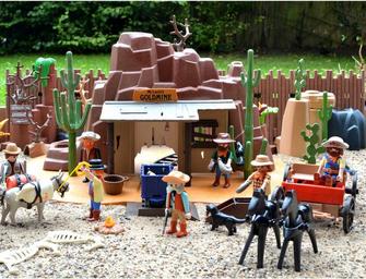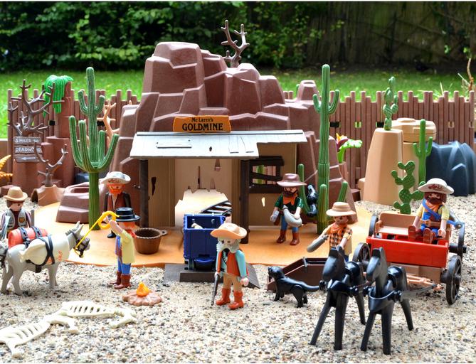 Keywords: playmobil western usa america goldmine gold silver gold digger coach donkey prospector cowboys trapper children toys