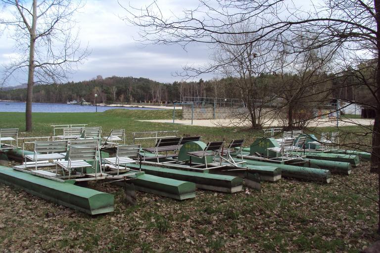 Keywords: Pláž Doksy.jpg cs Hlavní pláž Máchova jezera před sezonou own Zákupák 2011-04-08 50 34 30 512 N 14 38 52 625 E region CZ Máchovo jezero Boats in the Czech Republic Water transport on the Máchovo jezero