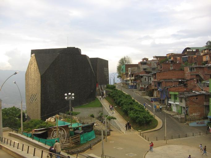 Keywords: Plaza España Medellin.JPG en The building of Plaza España Library in the hill-quarter of Santo Domingo Savio North-East Medellín Colombia The library was built during the administration of Major Fajardo in one of the most violent districts of the city as a peace process to involve marginalized communities es El edificio de la Biblioteca Plaza España en el alto barrio Santo Domingo Savio La obra fue construida durante la admnistración del alcalde Fajardo en uno de los sectores más violentos de la ciudad como una estrategia de pacificación de las comunidades más marginadas Own Albeiror24 2008-08-16 Biblioteca España |