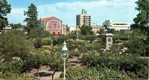 | Keywords: Plaza San MartÃn (Santa Rosa, La Pampa, años '60).jpg es Plaza San MartÃn Catedral de Santa Rosa con su fachada inconclusa y al fondo el Edificio Vivona Postal editada entre los años '60 y '70 FUENTE Fototeca Bernardo Graff Archivo Histórico Provincial Prof Fernando E Aráoz Santa Rosa La Pampa “ Argentina circa 1960 /1980 Tarjeta Postal author Custom license marker 2013 03 17 PD-AR-Photo Uploaded with UploadWizard Santa Rosa La Pampa Argentina in the 1960s | ||||