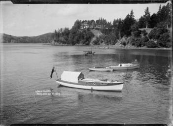 Keywords: blackandwhite monochrome vehicle boat outdoor photo border water black and white View of three yachts (two without masts) anchored in a bay, possibly Mansion House Bay. The entrance to Bon Accord Harbour can be seen in the distance. Photograph taken by William A Price in early 1900s. Inscriptions: Inscribed - Photographer's title on negative -bottom left: Kawau Island. Auckland, NZ. No 1867. Quantity: 1 b&w original negative(s). Physical Description: Dry plate glass negative 4.5 x 6.5 inches Pleasure craft moored at Kawau Island. Price, William Archer, 1866-1948 :Collection of post card negatives. Ref: 1/2-000243-G. Alexander Turnbull Library, Wellington, New Zealand. natlib.govt.nz/records/22563789 View of three yachts (two without masts) anchored in a bay, possibly Mansion House Bay. The entrance to Bon Accord Harbour can be seen in the distance. Photograph taken by William A Price in early 1900s. Inscriptions: Inscribed - Photographer's title on negative -bottom left: Kawau Island. Auckland, NZ. No 1867. Quantity: 1 b&w original negative(s). Physical Description: Dry plate glass negative 4.5 x 6.5 inches Pleasure craft moored at Kawau Island. Price, William Archer, 1866-1948 :Collection of post card negatives. Ref: 1/2-000243-G. Alexander Turnbull Library, Wellington, New Zealand. natlib.govt.nz/records/22563789 |