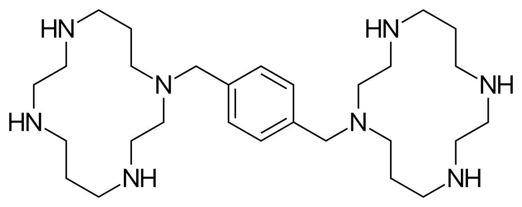 Keywords: Plerixafor.svg Skeletal formula of plerixafor IUPAC name 1- 4- 1 4 8 11-tetrazacyclotetradec-1-ylmethyl phenylmethyl -1 4 8 11-tetrazacyclotetradecane Created using http //www acdlabs com/download/chemsk html ACD/ChemSketch 10 0 and Inkscape Own 2007-03-04 Fvasconcellos Plerixafor |