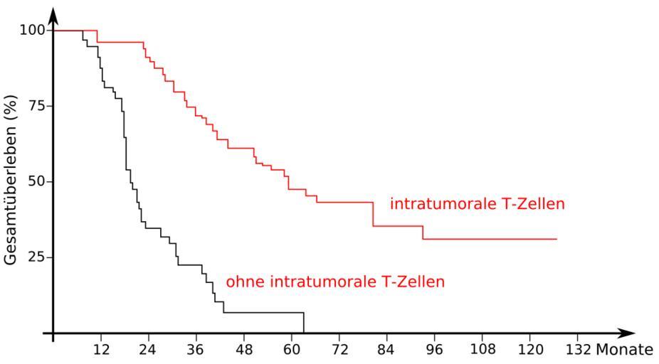 | Keywords: PMID12529460 02.svg Gesamtüberleben bei Ovarialkarzinomen mit und ohne Infiltration des Tumors mit T-Lymphozyten Data taken from L Zhang u a http //content nejm org/cgi/content/abstract/348/3/203 Intratumoral T Cells Recurrence and Survival in Epithelial Ovarian Cancer In NEJM 348 2003 pp 203-213 PMID 12529460 2009-06-28 Kuebi Armin Kübelbeck SVG files on oncology |