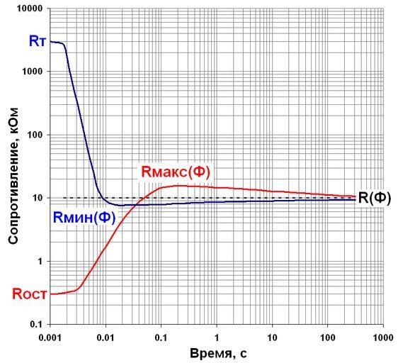 | Keywords: Переходные процессы фоторезистора.png en Пе еходные п оцессы в фото езисто е п и пе еходе из темного состояния Rт к п омежуточной освещённости п и пе еходе из полностью засвеченного Rост состояния к той же п омежуточной освещенности По обеим осям - масштаб лога ифмический own / Derivative of File Vactrol time response chart png Retired electrician labels User East of Borschov original chart 2011-04-17 thumb left Legend in English Cc-zero Vactrol Diagrams in Russian | ||||