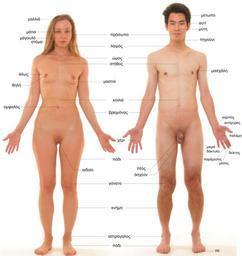 Keywords: Ανθρώπινη ανατομία.png el Τα βασικά ανατομικά χαρακτηριστικά ενός αρσενικού και θηλυκού ανθρώ ου en Human male and female - anatomical features pointed out - greek language fr Les parties du corps humain chez la femme et l'homme adultes - langue grecque File Anterior view of human female and male without labels jpg Mikael Häggström 2013-01-05 Human body images in different languages Cc-zero Photographs of the human body features Diagrams in Greek Nude men and women with white background |