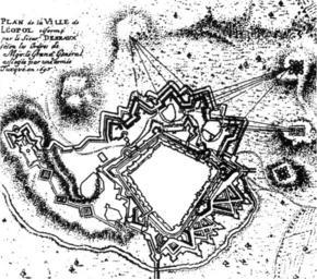 Keywords: План фортифікацій Деро.png uk План фо тифікацій Де о А хітекту а Львова Час і стилі XIII XXI ст Львів Цент Єв опи 2008 С 125 ISBN 978-966-7022-77-8 Desraux 1695 PD-old-100 Fortification of Lviv suburbs