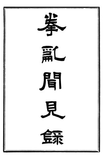 Keywords: 拳亂見聞錄.png zh 拳亂見聞錄 封 2016-06-05 振綺堂叢書 集 收錄之 拳亂聞見錄 封 管鶴 other versions PD-old-70-1923 書