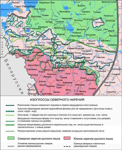 | Keywords: Изоглоссы-северного-наречия.png ru Ка та изоглосс севе ного на ечия на те ито ии с едне усских гово ов а основе данных Заха ова К Ф О лова В Г Диалектное членение усского языка аука 1970 2-е изд Едито иал УРСС 2004 http //www gramota ru/book/village/dialects html Язык усской де евни own Trevbus 2010-08-12 Linguistic maps in Russian Dialect areas of the Russian language | ||||