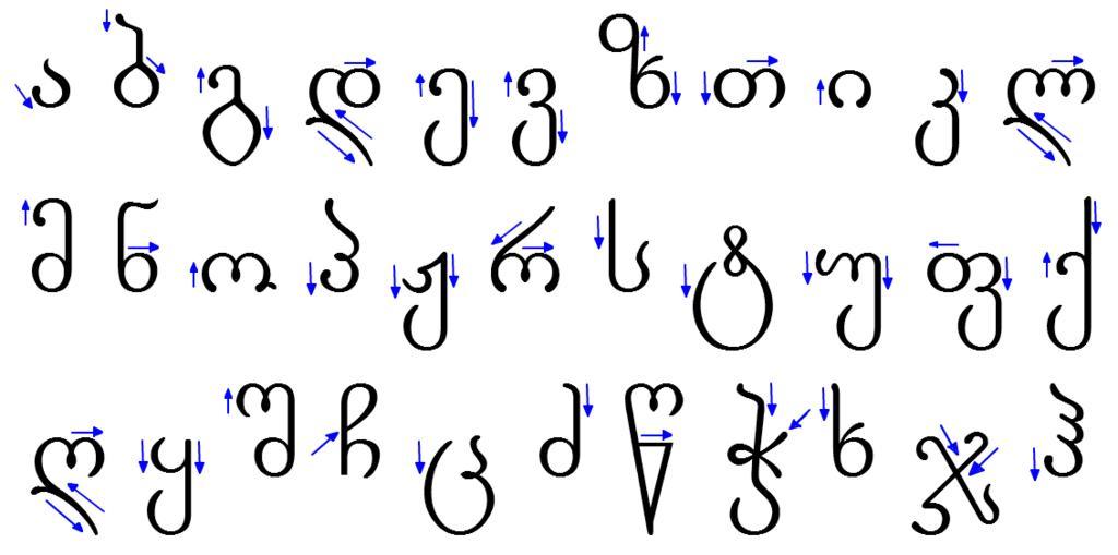 Keywords: მხედრულით წერის მიმართულება.png en Writing directions table for Mkhedruli script of the Georgian alphabet 2013 own Jaqeli alphabet Uploaded with UploadWizard Mkhedruli letters