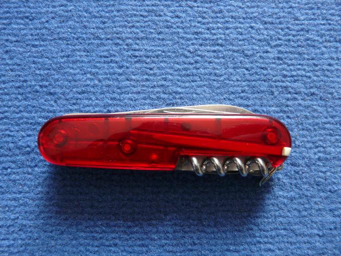 Keywords: pocket knife knife sharp cut pocket tool hazardous multifunction metal swiss opener red saw equipment