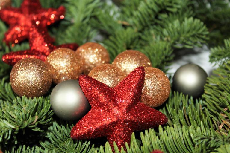 Keywords: poinsettia christmas christmas decoration decoration background christmas decorations balls advent red deco fir green branches silver gold christmas time holly contemplative christmas bauble