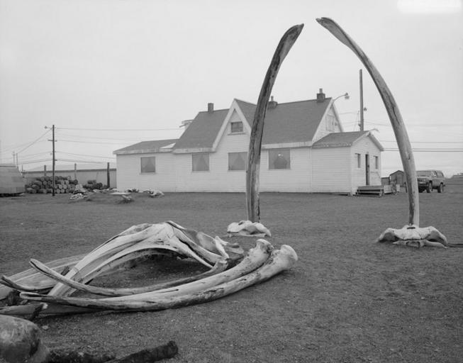 Keywords: Point Barrow Refuge Station.jpg 80004563 71 17 52 N 156 46 23 W View from the beach of the w Point Barrow Refuge Station located in Barrow Alaska Barrow North Slope Borough Alaska North Slope Borough Alaska the northernmost city in the United States Built in 1889 it was added to the National Register of Historic Places on 2 December 1980 The large structures in the foreground are Baleen whale bones ; note the whalebone arch Library of Congress Prints and Photograph Division Historic American Buildings Survey HABS http //hdl loc gov/loc pnp/hhh ak0382 AK 15-BARR 7-3 summer 1991 Creator Jet Lowe AK 15-BARR 7-3 LOC-image hhh ak0382 Built in Alaska in 1889 Barrow Alaska Buildings in Alaska Jet Lowe National Register of Historic Places in North Slope Borough Alaska Whale bone arches Other people's pictures by User Nyttend |
