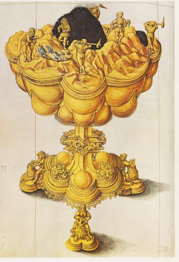 | Keywords: PokalHeiltum1500.jpg en Cup with representation of silver miners Saxonia about 1500 Miniature from Hallesches Heiltumsbuch 1526 Hofbibliothek Aschaffenburg Germany Sol Luna Auf den Spuren von Gold und Silber Degussa Hrsg 1973 Alfred Löhr / Unknown miniaturist 1526 2011-01-18 PD-old-100 Goldsmiths from Germany Crafts Hallesches Heiltum Hofbibliothek Aschaffenburg |