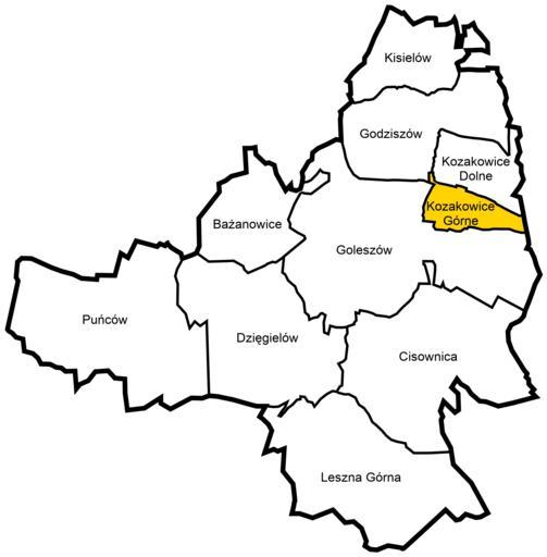 Keywords: POL Miejscowość Kozakowice Górne.png pl Miejscowość Kozakowice Górne w sołectwie Kisielów na mapie gminy own D T G 2011-01-19 Cc-zero Kozakowice Locator maps of gmina Goleszów