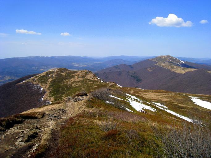 Keywords: poland bieszczady spring mountains the horizon blue sky the hills sky clouds