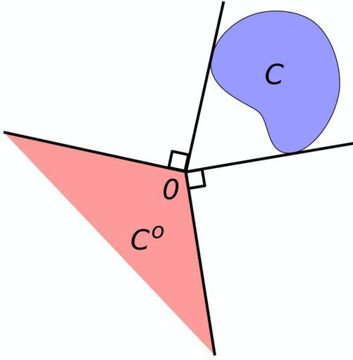 Keywords: Polar cone illustration1.svg A set C and its polar cone Co The dual cone and the polar cone are symmetric to each other with respect to the origin own Oleg Alexandrov Made with Inkscape Convex geometry Optimization Files by User Oleg Alexandrov from en wikipedia |