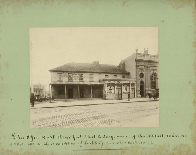 Keywords: archives state records nsw staterecordsnsw newsouthwales blackandwhite hotel pub police office hotel policeofficehotel york street yorkstreet druitt street druittstreet sydney people horse and cart horseandcart 1889 black and white Front view of 'Police Office Hotel', No.147 York Street (corner of Druitt Street), Sydney - showing condition of building Dated: 4/10/1889 Digital ID: 745_a019_a019000020 Rights: www.records.nsw.gov.au/about-us/rights-and-permissions In 1879 The City of Sydney Improvement Act was constituted as a result of the findings of the Sydney City and Suburban Sewage and Health Board regarding the poor condition of buildings and sanitation within the City of Sydney due to a lack of proper legislation and codes of building practice. The City of Sydney Improvement Board was appointed to execute the Act. These photographs, taken by private photographers for the Board, show buildings in need of repair or undergoing alterations, as well as views of streets showing the condition of awnings, signboards and walls of shops, hotels and private residences. We'd love to hear from you if you use our photos. Many other photos in our collection are available to view and browse on our website using Photo Investigator. Front view of 'Police Office Hotel', No.147 York Street (corner of Druitt Street), Sydney - showing condition of building Dated: 4/10/1889 Digital ID: 745_a019_a019000020 Rights: www.records.nsw.gov.au/about-us/rights-and-permissions In 1879 The City of Sydney Improvement Act was constituted as a result of the findings of the Sydney City and Suburban Sewage and Health Board regarding the poor condition of buildings and sanitation within the City of Sydney due to a lack of proper legislation and codes of building practice. The City of Sydney Improvement Board was appointed to execute the Act. These photographs, taken by private photographers for the Board, show buildings in need of repair or undergoing alterations, as well as views of streets showing the condition of awnings, signboards and walls of shops, hotels and private residences. We'd love to hear from you if you use our photos. Many other photos in our collection are available to view and browse on our website using Photo Investigator. |