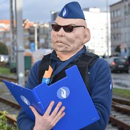 Keywords: police officer agent blue costume people police mask carnival job uniform dress up man