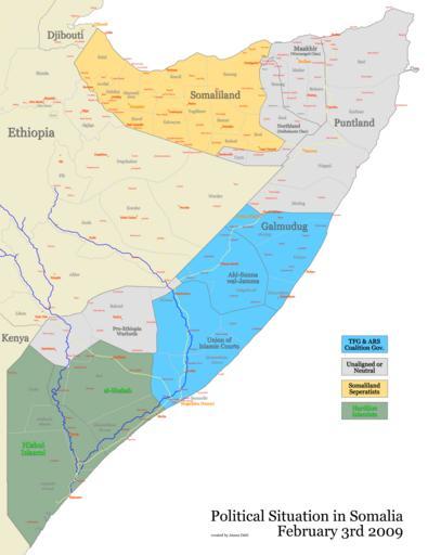 Keywords: Political situation in Somalia following the Ethiopian withdrawal.png Political situation in Somalia following the Ethiopian withdrawal<br/> en Category Maps of Somalia Transferred from http //en wikipedia org en wikipedia; transferred to Commons by User SVTCobra using http //tools wikimedia de/~magnus/commonshelper php CommonsHelper <br/> Original text User Ingoman 2009-02-17 original upload date <br/> Original text 17 02 2009 User Ingoman Original uploader was BobaFett85 at http //en wikipedia org en wikipedia Released into the public domain by the author map en wikipedia BobaFett85 Original upload log page en wikipedia Political_situation_in_Somalia_following_the_Ethiopian_withdrawal png 2009-02-17 14 25 BobaFett85 2000×2594× 327737 bytes <nowiki> Political situation in Somalia following the Ethiopian withdrawal User Ingoman 17 02 2009 User Ingoman </nowiki> Maps of Somali Civil War |